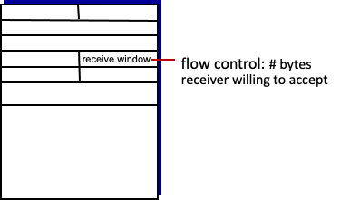 - TCP는 송신자가 수신 윈도우라는 변수를 유지하여 흐름제어를 제공한다. 수신 윈도우는 수신 측에서 가용한 버퍼 공간이 얼마나 되는지를 송신자에게 알려주는 데 사용된다. TCP는 전이중(full-duplex)이므로 연결의 각 측의 송신자는 별개의 수신 윈도우를 유지한다.