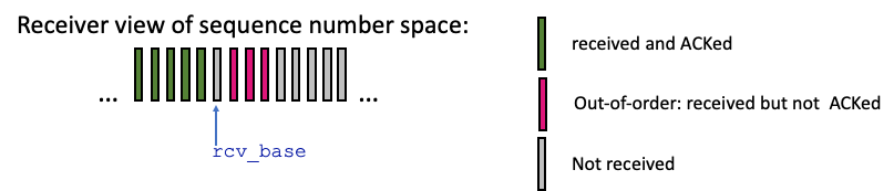 SR 수신자는 패킷의 순서와는 무관하게 손상 없이 수신된 패킷에 대한 확인응답을 할 것이다. 순서가 바뀐 패킷은 빠진 패킷이 수신될 때까지 버퍼에 저장하고, 빠진 패킷이 수신된 시점에서 일련의 패킷을 순서대로 상위 계층에 전달할 수 있다.