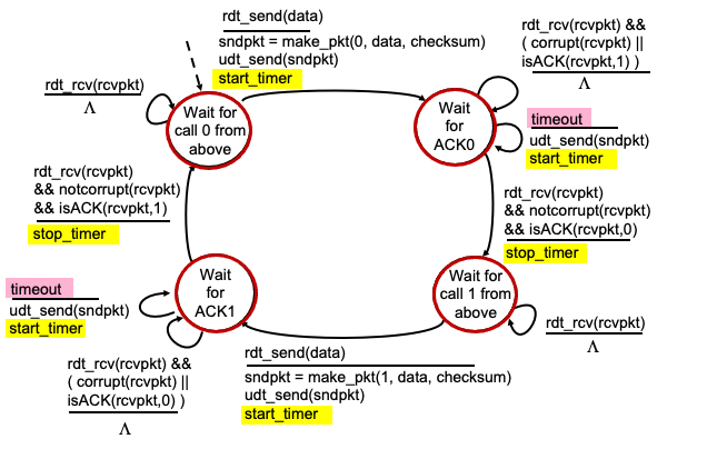 (2) 타이머 인터럽트에 반응함 (ACK이 타이머 시간동안 수신되지 않는다면 패킷을 재전송 한다.)