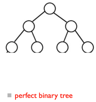 내부 노드가 모두 2개의 자식을 가지며, 리프 노드가 모두 같은 레벨에 존재하는 트리, Perfect binary tree는 Full binary tree이며 Complete binary tree이다. 트리의 height가 h일 때, 공비가 2이고, 항의 개수가 h + 1인 등비수열의 합이 노드의 개수(2^(h+1)-1)이다.