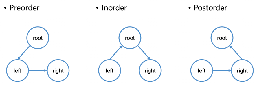 - Preorder Traversal (전위 순회) : 루트 노드 -> 왼쪽 서브트리 -> 오른쪽 서브트리