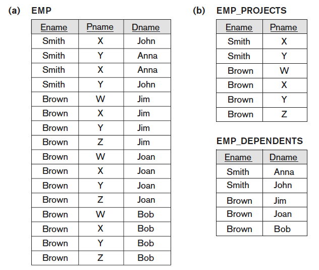 relation schema은 database의 모든 attribute를 포함하고, 여기서 모든 attribute의 이름은 unique하다. 이 R을 D = {R_1, R_2, ..., R_m}으로 Decompose한다면, 각 R_i는 R의 subset을 포함한다. 그리고 R의 Attribute는 적어도 하나의 R_i에 포함된다. 각 R_i는 BCNF 또는 3NF가 되며, D는 R의 Decomposition이라고 불린다.