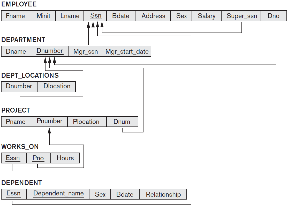 - Foreign key (FK): 참조되는 튜플의 PK 값을 attribute로 갖는 것, NULL일 수 있다. t_1[FK] = t_2[PK] (or NULL) <- t_1이 t_2를 참조