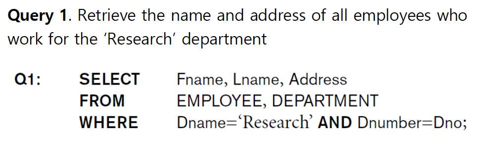 이는 relational algebra operation의 SELECT(WHERE), PROJECT(SELECT), JOIN(FROM)의 조합이다.
