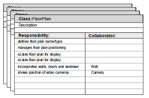 - 클래스 이름, 책임, 협력자 정보를 기록한 인덱스 카드 사용