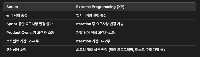 - 페어 프로그래밍(Pair Programming): 두명의 개발자가 한 컴퓨터에서 함께 코딩