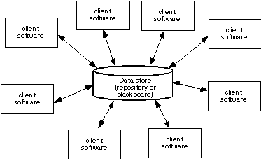 모든 컴포넌트들이 공유 데이터 저장소와 블랙보드 컴포넌트에 접근이 가능한 형태로, 컴포넌트들은 검색을 통해 블랙보드에서 원하는 데이터를 찾을 수 있다.